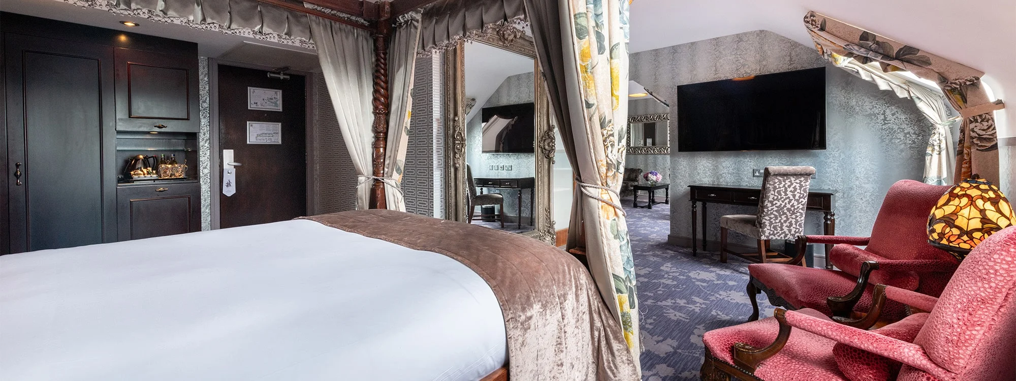 From elegant four-poster beds to opulent furnishings, the suites at Clontarf Castle Hotel exude luxury and charm. Blending contemporary sophistication with classic grandeur, each suite is thoughtfully designed to provide the ultimate castle experience.