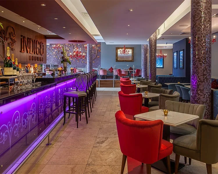 There’s a sense of sophisticated fun in Indigo Lounge, where glamorous red chandeliers cast a sparkle over your occasion.