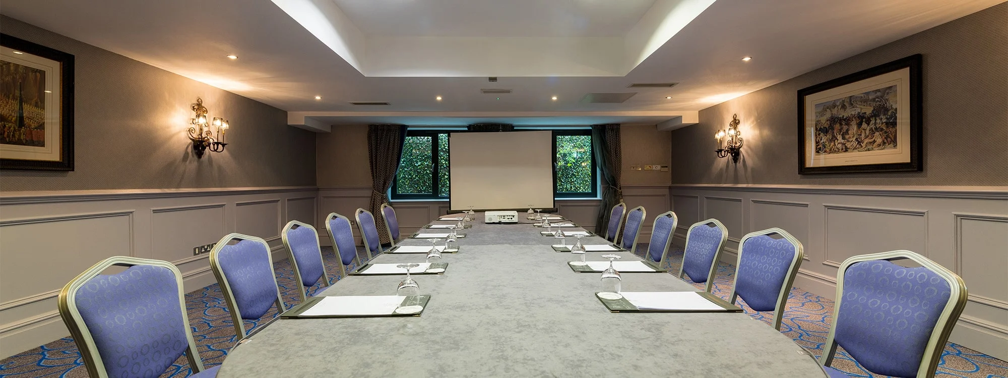 Arranged in a warm silver & purple colour scheme, the Norman Suite is ideal for a meeting or conference of up to 25 persons boardroom style or 50 persons theatre style.
