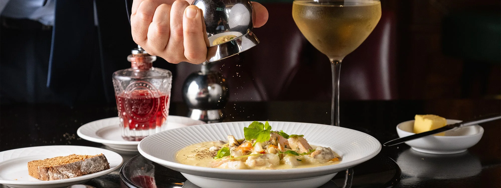 Experience a journey through modern Irish cuisine with carefully designed menus, the best of local produce and impeccable service taking pride of place at Clontarf Castle Hotel.